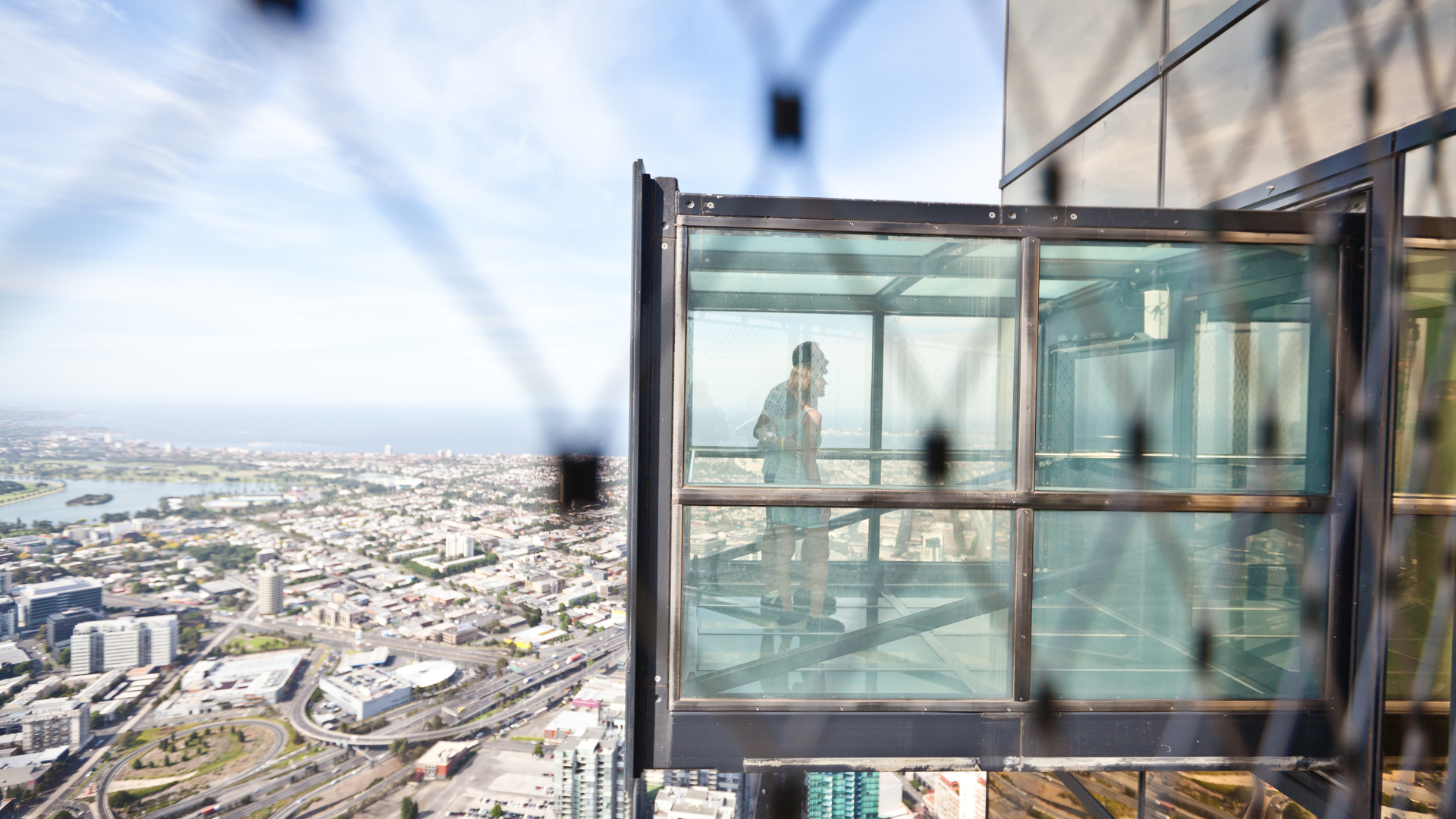 The Edge is a glass cube that extends 3 metres from the Eureka Tower, suspending guests 88 floors above Melbourne. It offers a thrilling and safe perspective.